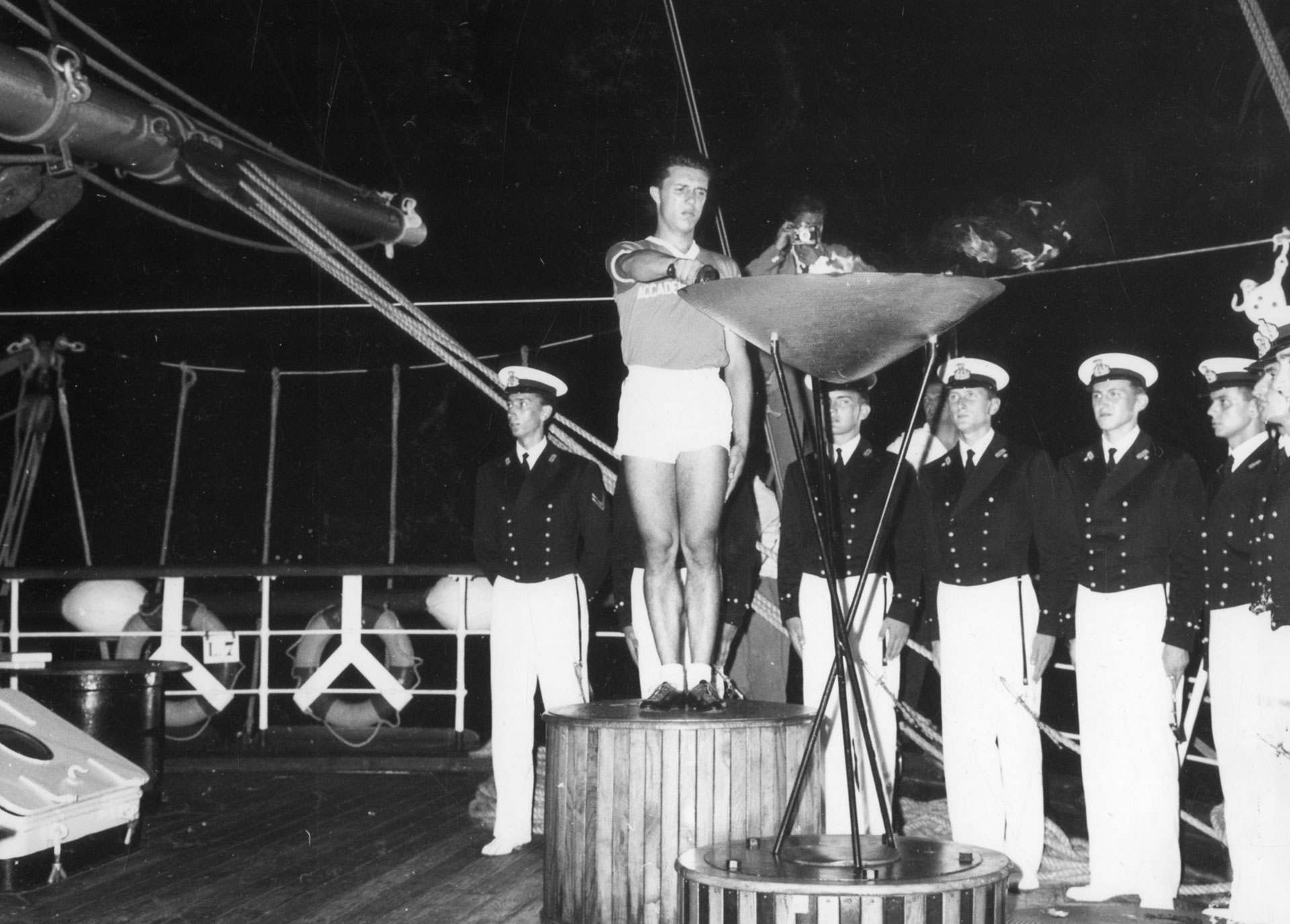 1960 – Olympic Torch on board the Amerigo Vespucci
