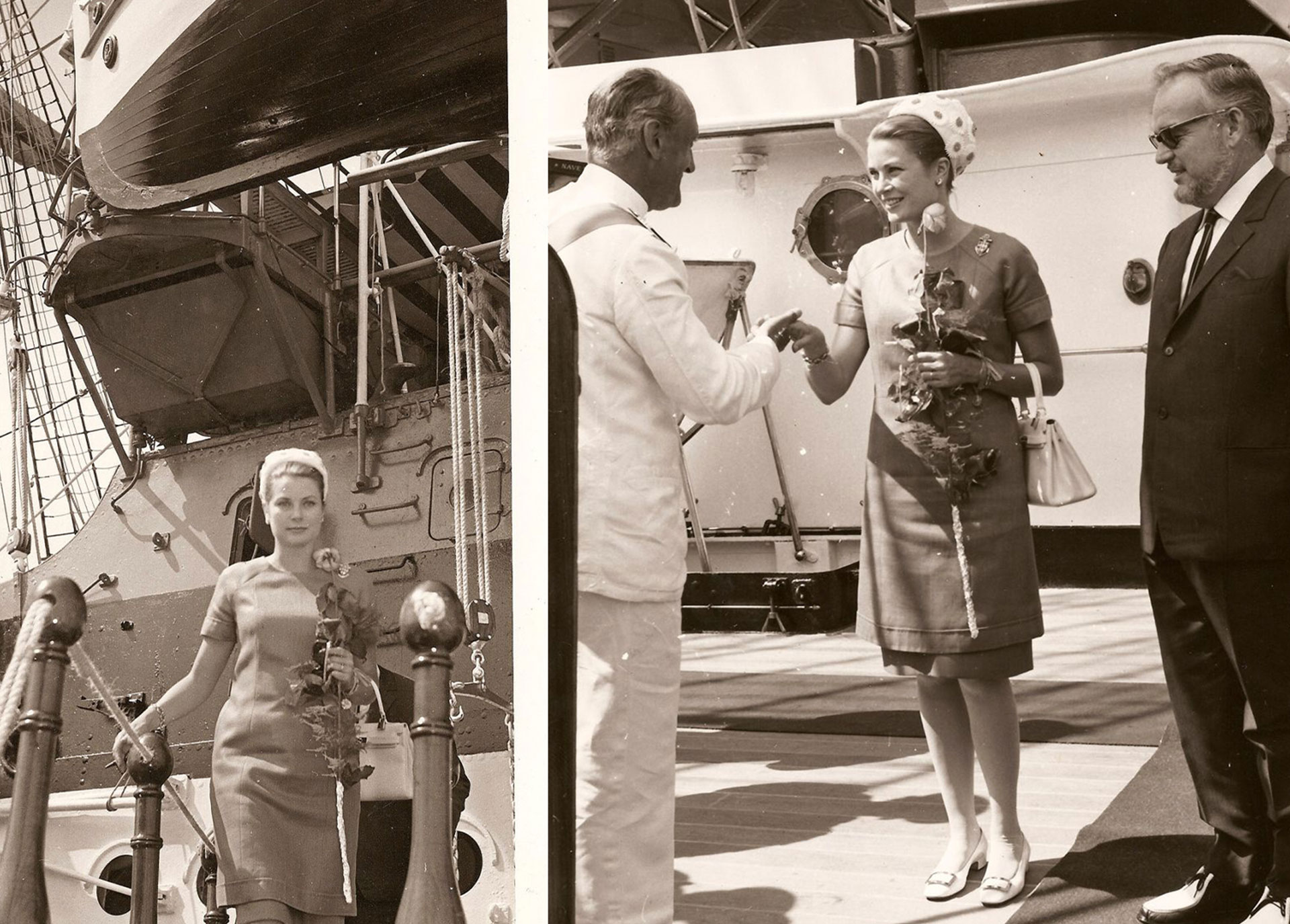 1966 – The Princes of Monaco, Rainier III and Grace Kelly, on board the Amerigo Vespucci