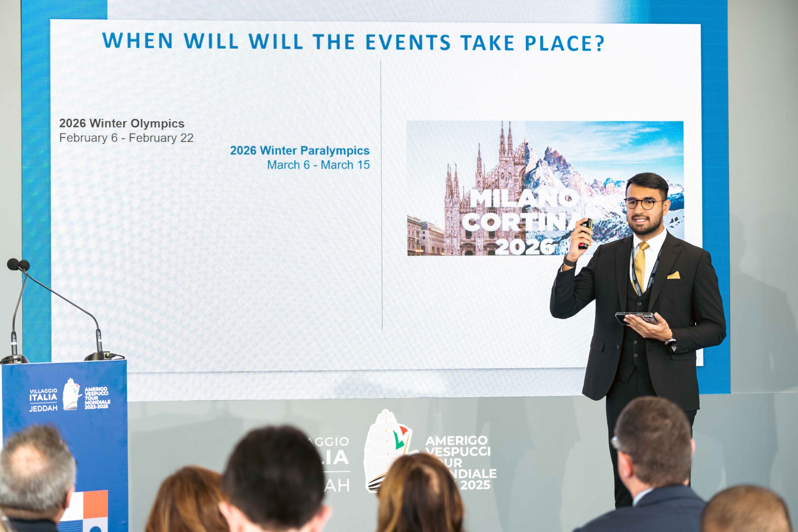 Il Villaggio Italia è stato anche una vetrina dedicata a ciò che accadrà in occasione dei Giochi olimpici invernali del 2026, promuovendo i valori dello sport, dell’inclusione e della valorizzazione del territorio e delle montagne italiane. Durante la tappa di Jeddah e Singapore, i visitatori hanno potuto partecipare a un panel organizzato dal Ministero del Turismo e dall’Agenzia Nazionale del Turismo (ENIT), rivolto a tour operator, media trade, agenzie di viaggio e wedding planner, per presentare le opportunità e il potenziale del turismo legato all’evento olimpico.