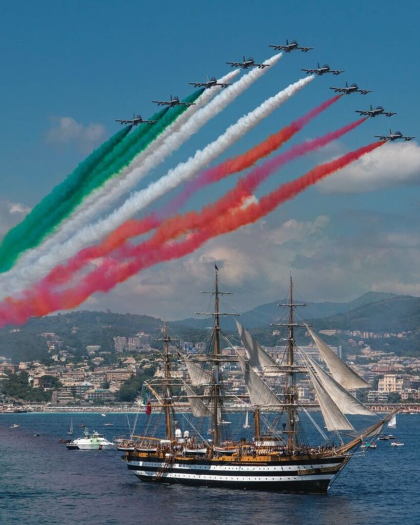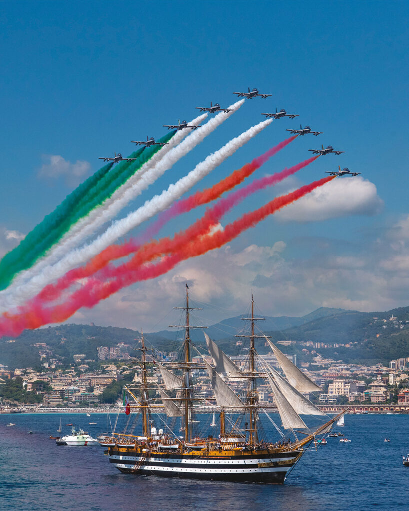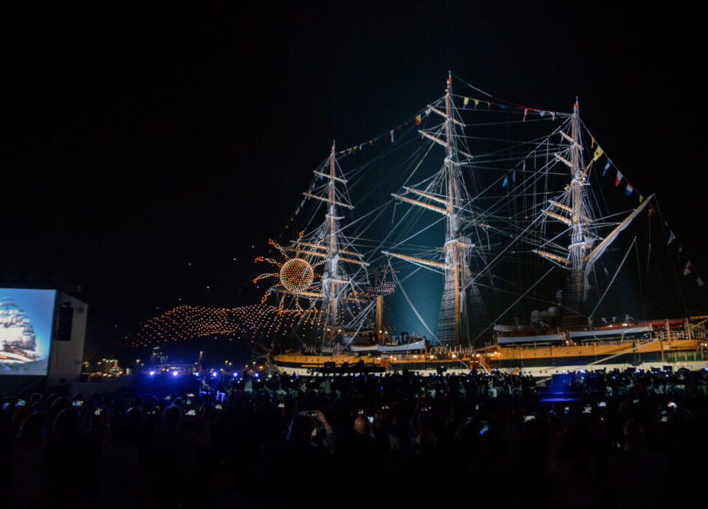 La serata si è conclusa con un tributo spettacolare: 1.750 droni hanno illuminato il cielo di Genova con uno straordinario spettacolo di luci, rendendo omaggio alla leggendaria nave, simbolo della tradizione navale italiana e ambasciatrice dell’Italia nel mondo. Le coreografie luminose hanno incantato il pubblico, disegnando tra le tante figure una grande bussola, emblema della navigazione, il globo terrestre a ricordare il lungo viaggio intorno al mondo, il motto del Vespucci che da sempre ne accompagna la storia e, infine, il logo del Tour Mondiale, suggellando così in modo suggestivo la conclusione di un’avventura senza precedenti.